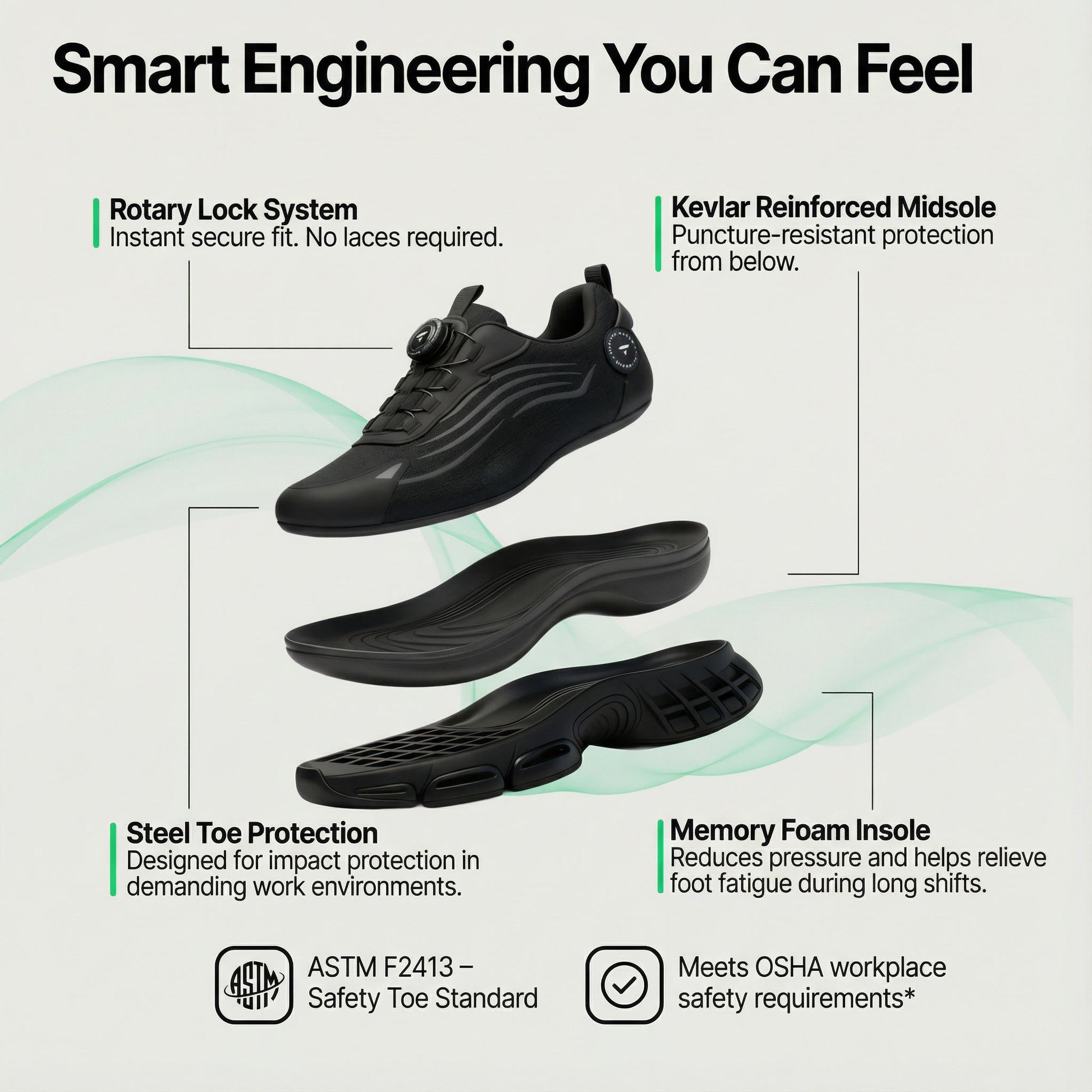 I’m on my feet all day, and SAFETRAX made a huge difference. They’re lightweight, comfortable, and don’t feel bulky at all. Best work shoes I’ve owned so far.